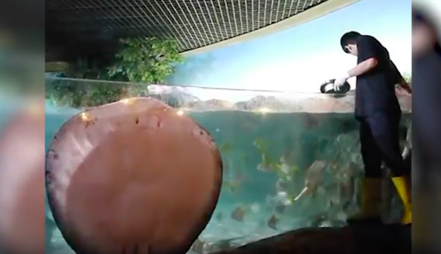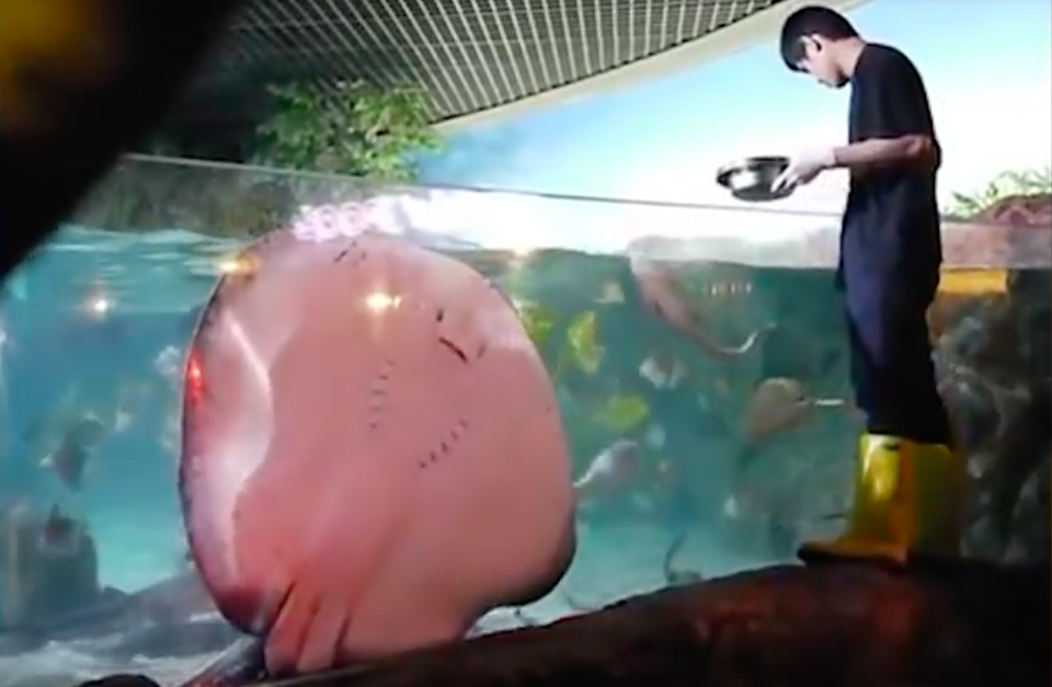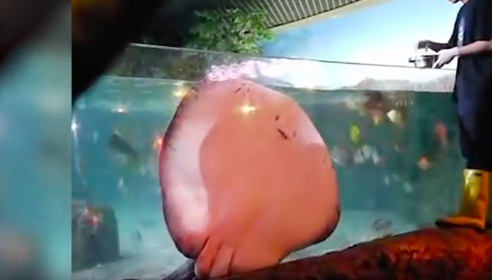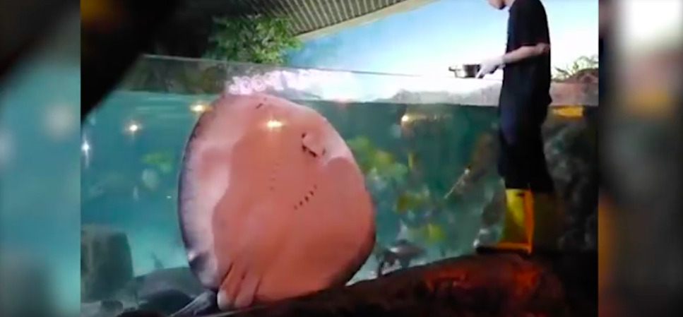 Dieser Human besitzt ein Aquarium voller verschiedenen Fischrassen, und überraschenderweise lebt auch ein Stingray auch darin. Diese große Kreatur erschien oft auf dem Glas, um seinen menschlichen Vater zu begrüßen. Aber eines Tages tauchte er auf dem Glas aus einem völlig anderen Grund auf.