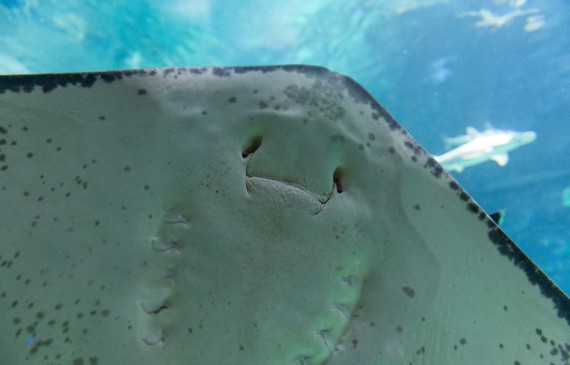 Die Stingray brannte seine Flossen gegen das Aquariumglas, um aufmerksam zu sein. Er stützte sich ständig gegen dieses Glas, in der Hoffnung, dass sein Vater erkennen würde, dass er auch hungrig ist und etwas Essen braucht. Aber, wie er auf dem Bild ersichtlich ist, war der Mensch damit beschäftigt, seine Fische zu füttern. Die Geduld des Stingrays übernahm und er tat etwas Überraschendes.