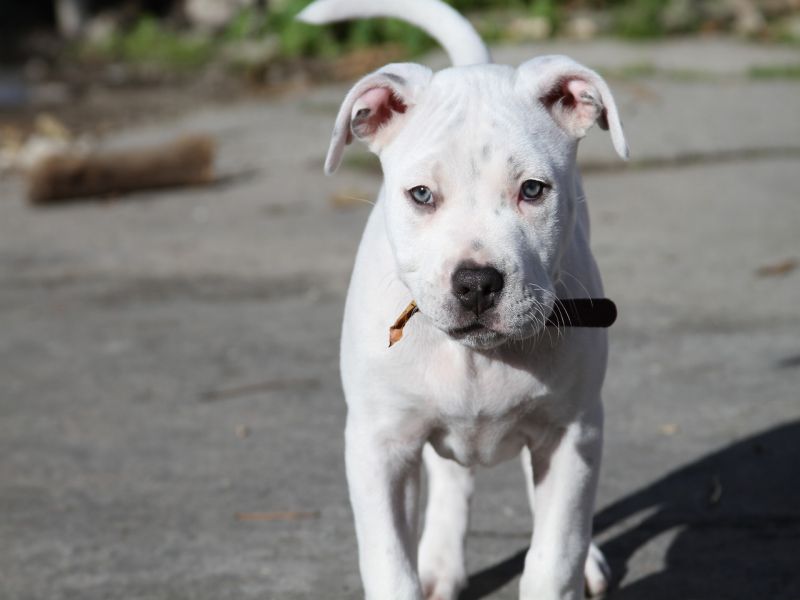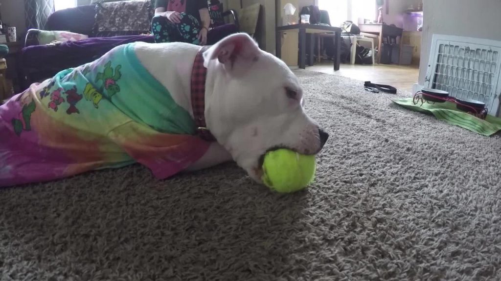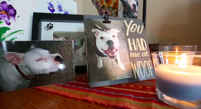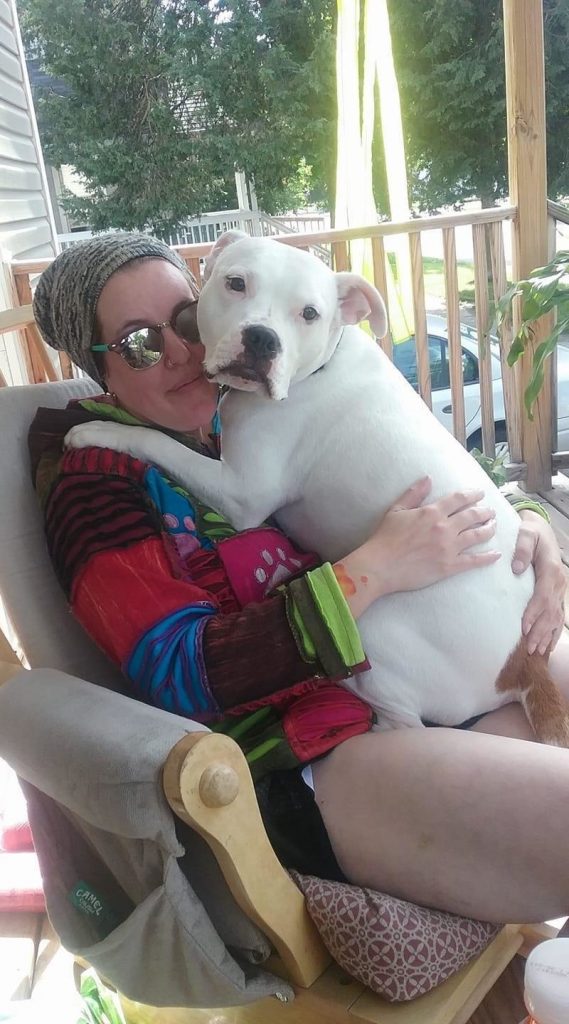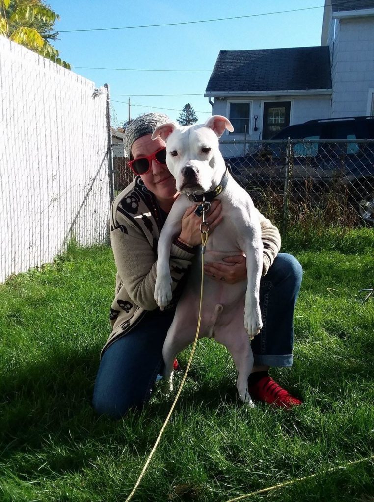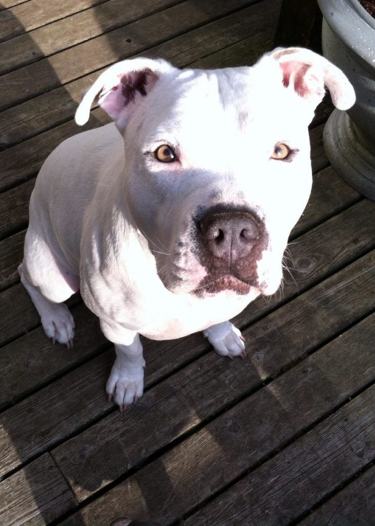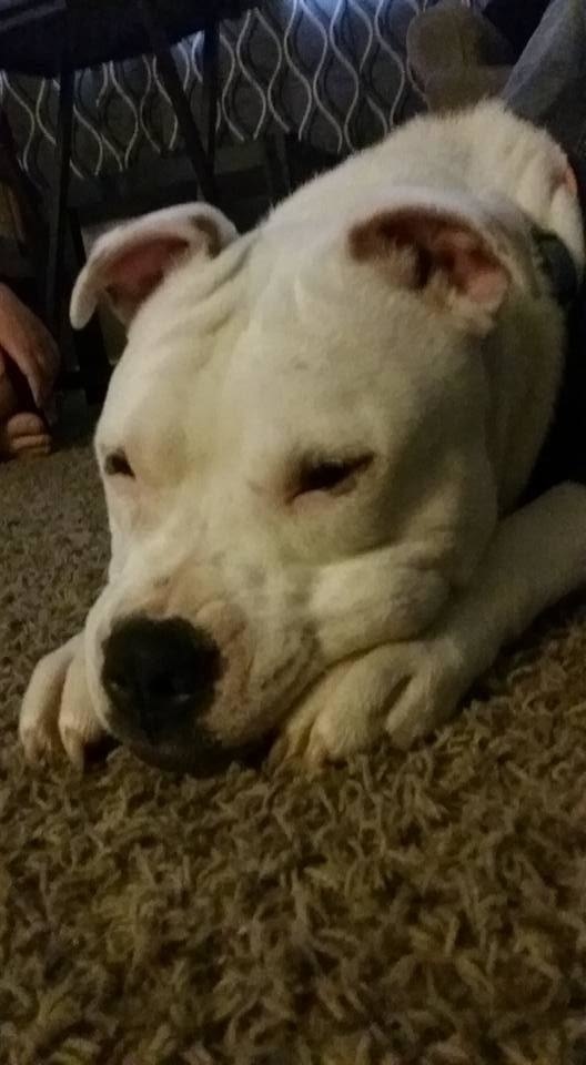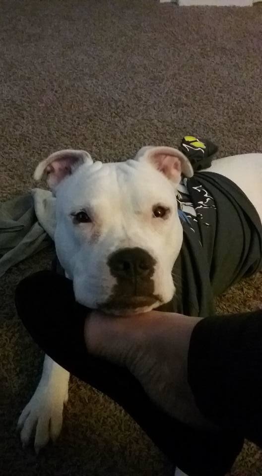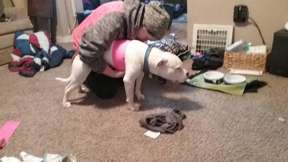 Kelly hat nach Hunden gesucht, die zur Adoption und zum Glück gefunden wurden, fand sie einen. Es war ein weißer Pitbull-Mix mit dem Namen Rocco. Es war einfach perfekt für sie und in dem Moment, in dem sie ROCco sah, wusste sie, dass dies der Hund war, nach dem sie gesucht hat. Sie glaubte nichts und absolvierte alle Papierkram, die nach dem Annahme eines Hundes erforderlich war. Endlich war er zu Hause.