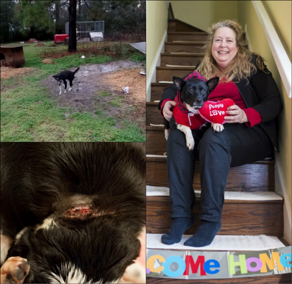 Dieser Welpe war in einem sehr schlechten Zustand, als er von Peta-Leuten gefunden wurde. Es gab kein Fell auf seinem Körper und er war wegen Herzwürmern krank. Aber aufgrund der Bemühungen von Peta und dem Virginia Beach SPCA hat er jetzt eine Familie, in der er seine neuen Freunde, einem Hund und drei Katzen traf.