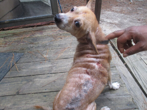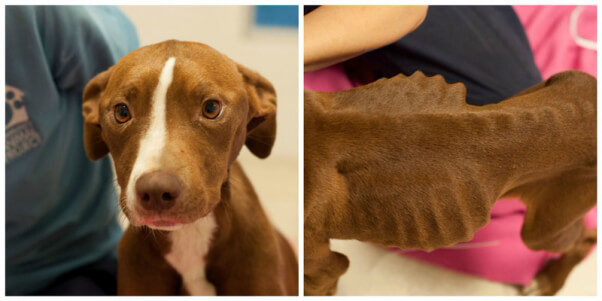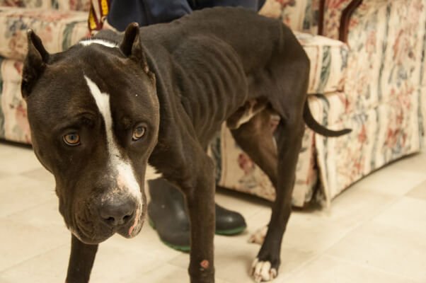 Sie werden überrascht sein, dass der Hund, den Sie im Bild sehen, eigentlich ein Pitbull, namens Dallas. Sein Besitzer klebte ihn außerhalb des Hauses an und erhielt kein richtiges Essen. Weil diese Misshandlung unter Darmparasiten litt. Glücklicherweise erwischten Peta-Leute den Wind über Dallas und sie nahmen Maßnahmen, um ihm zu helfen. Nachdem Peta ihn in den Tierheim brachte, erlangte er in kürzester Zeit 30 Pfund und war wieder gesund.