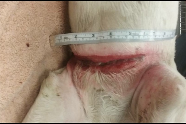 Wenn Sie seinen Halsband um seinen Hals bemerken können, ist fast an seinen Hals geklebt, wann er gefunden wurde, war er in einem sehr schlechten Zustand. Er litt auch an einer ernsthaften Infektion, die schmerzhaft war, als er immer wieder weinte, wann immer jemand ihn berührte. Er lebt jetzt mit einer richtigen Familie und genießt sein Leben.
