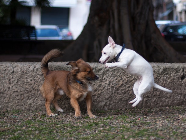Wenn Sie diesen entzückenden Schuss dieser beiden Welpen ansehen, erinnern Sie sich an Sie und Ihren besten Freund? Wir alle wissen, dass wir entweder das braune oder das Weiß mit unseren BFFs sind. Wir necken sie, viele von uns werden viel geärgert. Dies ist nur ein weiterer gewöhnlicher Tag, an dem die beiden Freunde im Park spielen. Ein Welpe genießt eindeutig, den anderen zu necken, während der andere traumatisiert bleibt.