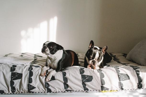 Haben Sie jemals einen dieser Tage gehabt, als Sie einfach nicht von niemandem gestört werden wollen, wenn Sie sich einfach nur von der Gesellschaft verstecken möchten? Nun, in diesen Tagen gibt es immer jemanden, der immer noch zu Ihnen durchkommen kann, sondern jemanden, den Sie netflix anschauen oder den Kühlschrank mit überfallen können. Dieses Foto der beiden Boxer-Terrier erfasst definitiv die Essenz von solchen Tagen. Betrachten Sie sie einfach so bequem im Bett.