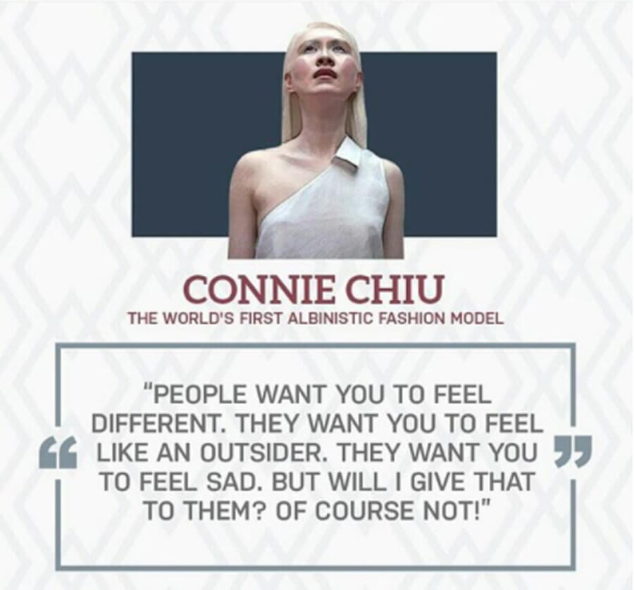 Als Connie 25 drehte, begann sie mit der Hilfe ihrer Schwester ihre Modellkarriere und schaute seitdem nie zurück. Chiu war ziemlich offen, während ich über den Albinismus in einem Interview mit dem Laster sprach: "Ich glaube, ich wusste immer, dass ich anders war, aber ich fühle mich genau das Gleiche wie jeder. Ich wurde so gemacht. Es ist, als würde man mit Waffen geboren werden - du gehst nicht um zu sagen: 'Oh mein Gott, Arme!' Sie sind nur da. "