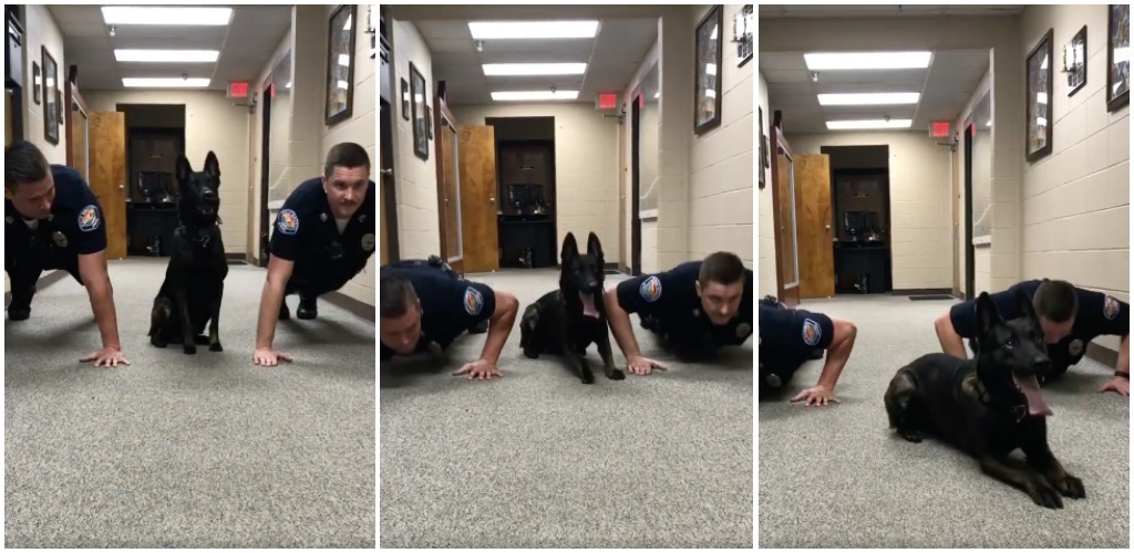Beobachten Sie bezauberndbarer Polizeihund Tun Pushups zu "Auge des Tigers"
