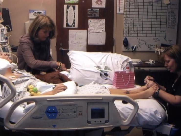 Ryan erinnert sich daran, dass sie es schwierig bemühte, etwas zu sagen und nicht nur murmelt. Sie versuchte auch, sich zu bewegen, was seltsam war und Ryan verstand, dass etwas nicht normal war. Ryan war verwirrt, war es nur ein Reflex ihres Körpers? Oder sie wurde besser? Wie wurde sie ohne Lebensunterstützung besser?
