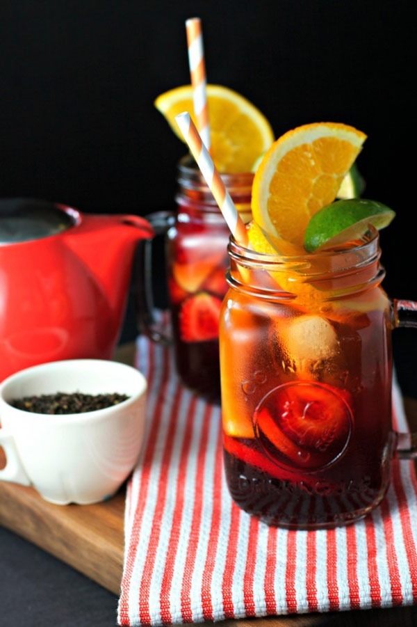 Denken Sie an dieses Gebrauen als Sangria of Tees. Earl Grey Tee ist steil, abgekühlt, und schließt sich an Orange, Granatapfelsaft, Kalk, Apfel und Erdbeeren an, alles mit Eis, um einen schweren aromatischen und nährstoffverpackten Auffrischungen zu schaffen.