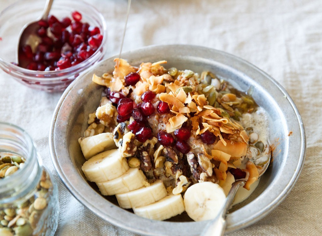 Sick of plain ol‘Hafer zum Frühstück essen? Koch, der eine Charge von Quinoa und machen Sie Ihren Morgen Schüssel eine Mischung aus den beiden Körner. Sicher, die Quinoa ein bisschen mehr Kalorien als Haferflocken, aber es bietet mehrProtein und Faser, es ist so eine Verwechslung in fühlen wir uns lohnt sich, zumindest gelegentlich, wenn Sie Ihren Gaumen Verlangen etwas anders sind. Mix-Ins, dass Paar gut mit der Combo sind: Kürbiskerne, gerösteten Walnüssen, Granatapfelkernen, Banane in Scheiben geschnitten, und Kokosflocken.