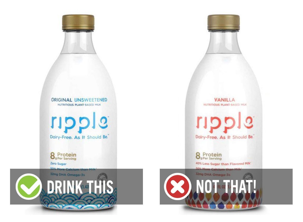 Wenn Sie normalerweise Ihre Calcium-Fix von Milch erhalten, wählen Sie sicher, dass Sie eine Sorte auswählen, die eine gute Quelle des Minerals ist. Seidenflasche hat 45% Ihres Kalziums DV im Vergleich zu so köstlichen "10%. So lecker fügt Canola-Öl dem Mix hinzu - selbst wenn es nicht-GVO ist, warum sollten Sie Canola-Öl trinken? Außerdem enthält es Phosphate, die nach einer Studie mit Nierenerkrankung verbunden sindDiabetes-Spektrum..
