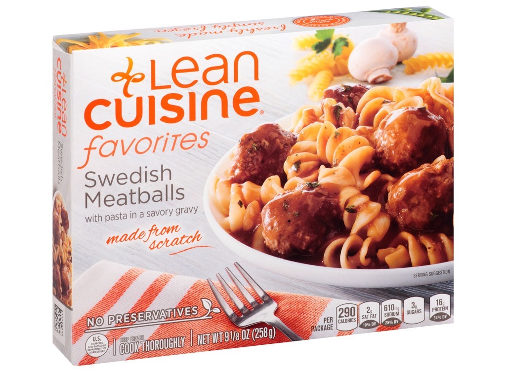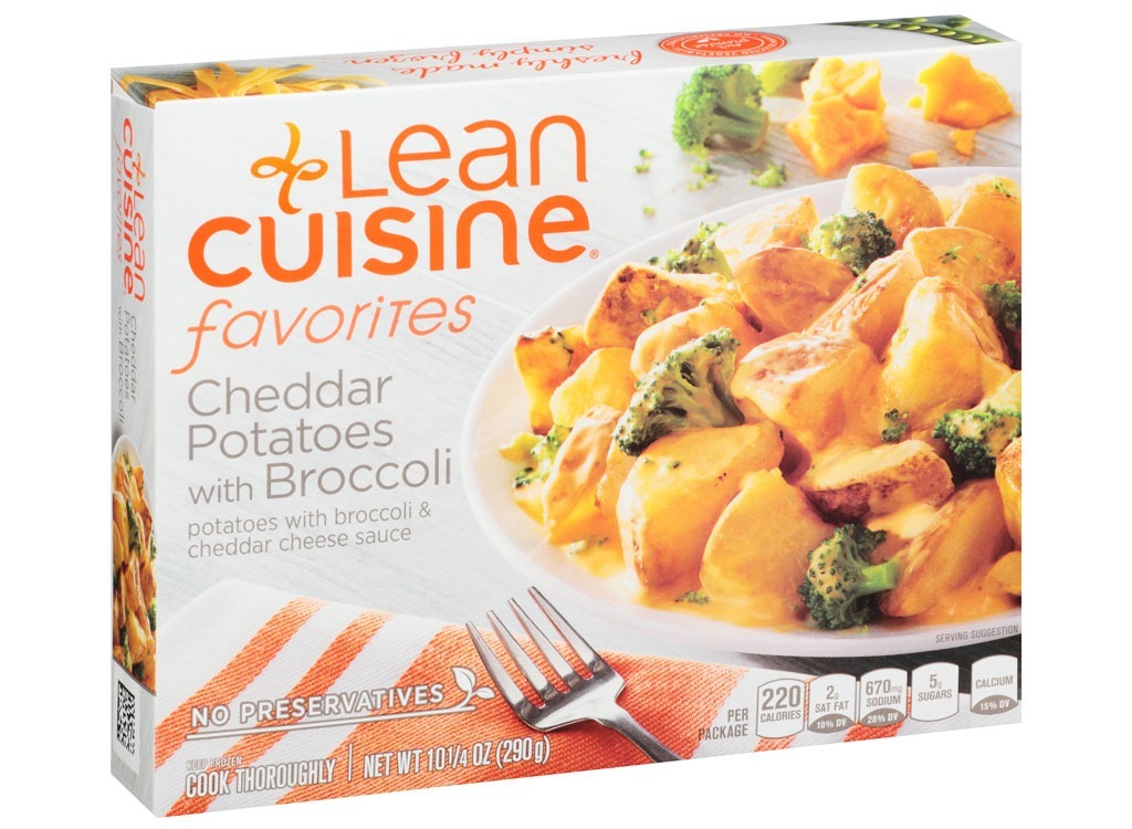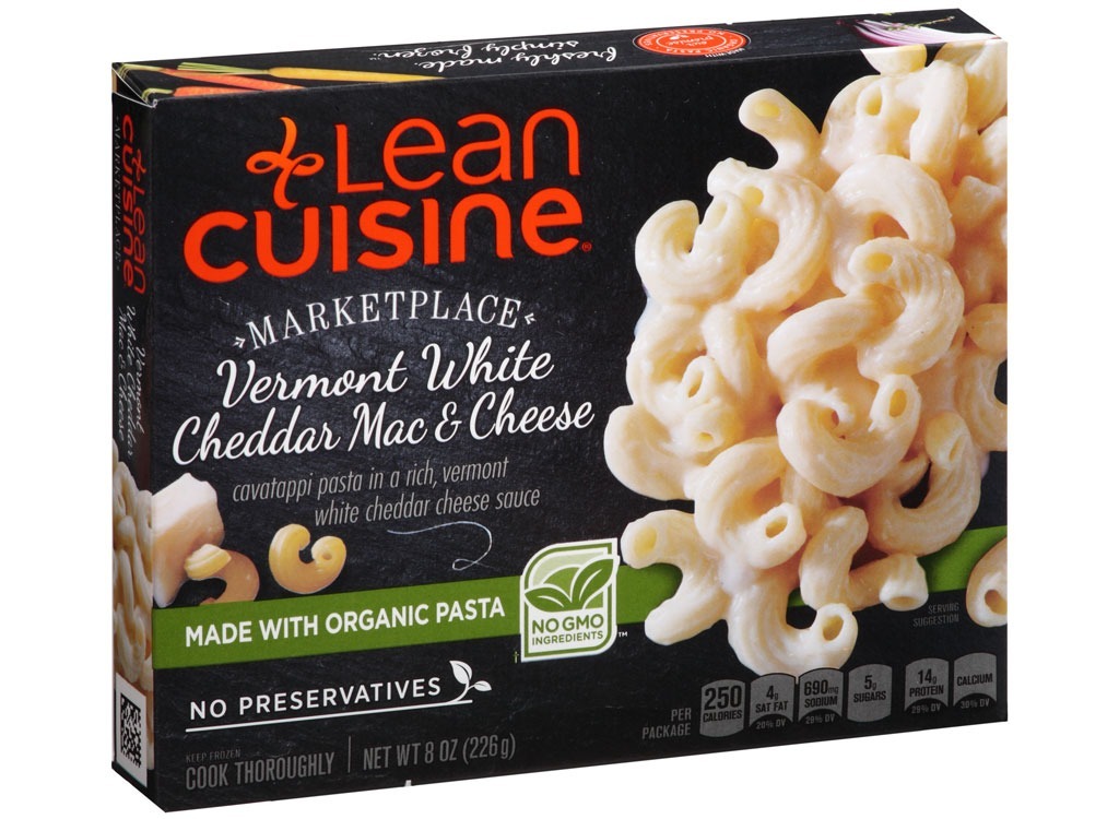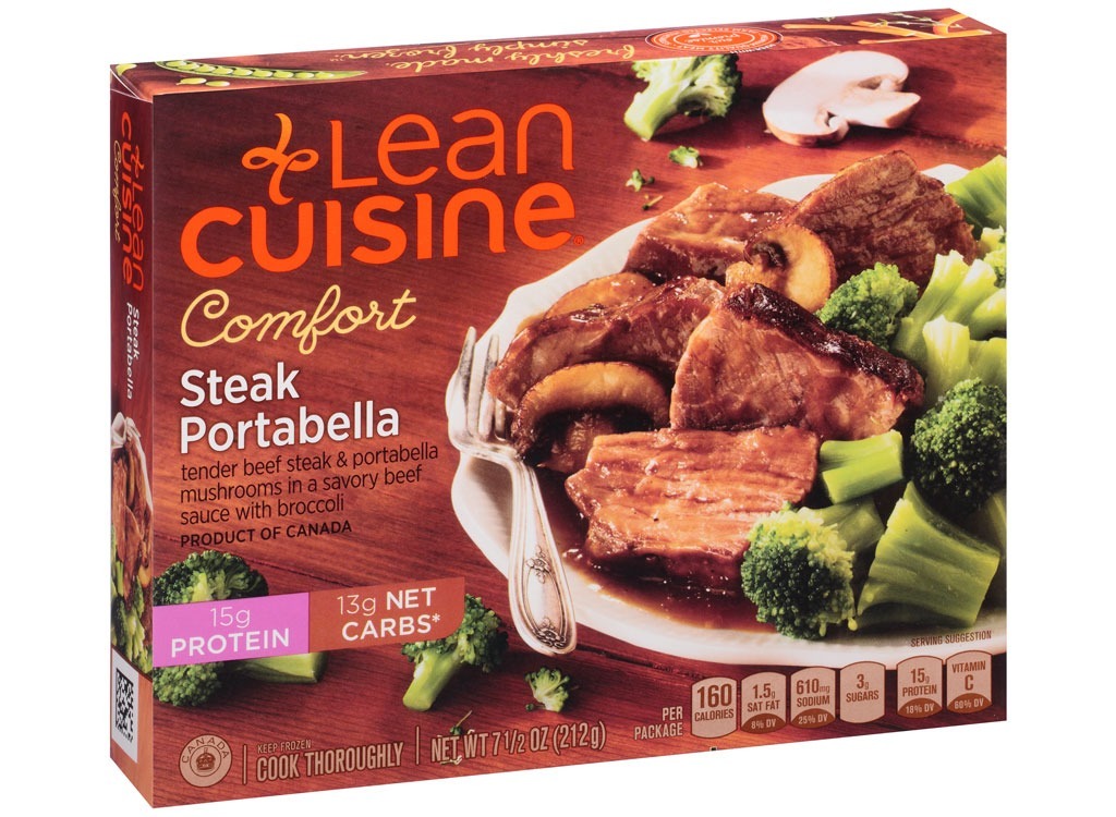 Wir dachten nie, dass ein Salisbury Salisbury Steak mit Mac & Käse ein etnt-Siegel der Genehmigung erhalten würde, aber das Angebot von Lean Cuisine ist eines der drei in Eiweiß höchsten Mahlzeiten, enthält eine angemessene Menge an Kohlenhydraten, ist niedrig in Zucker, hoch in Fetten und hat ein vernünftiges Faser-Zucker-Verhältnis. Wenn Sie zu Hause sind, können Sie es mit einer Seite von gedünstetem Brokkoli für einige zusätzliche antioxidativ-reiche Gemüse paaren.