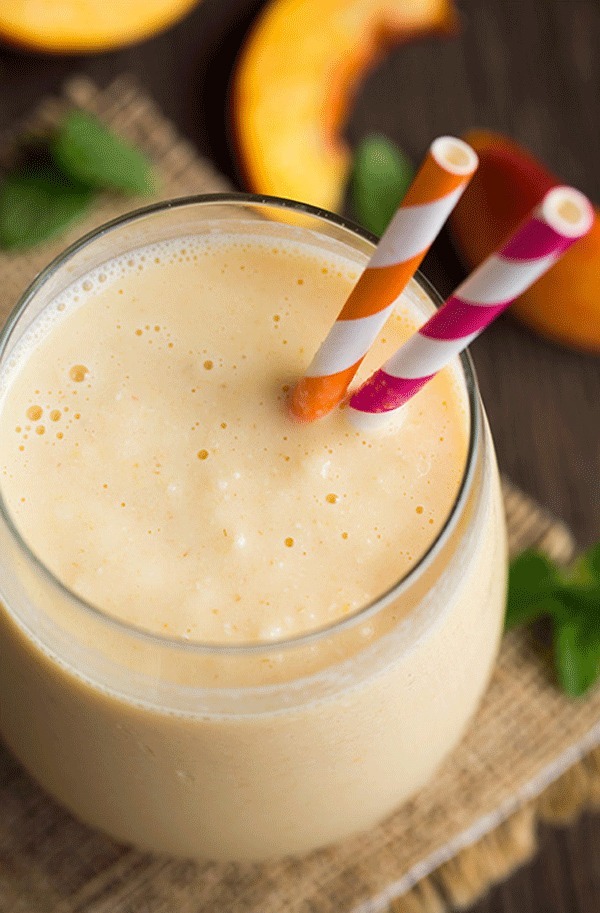 Gefrorene Pfirsiche, reife Banane, fasergefüllte Hafer, Mandelmilch und proteinverpackter griechischer Joghurt liefern in nur drei Minuten ein Füllungsfrühstück. Mit 11 g Eiweiß und 6 Gramm Ballaststoffe stammt es den mittleren Morgen-Hangries.