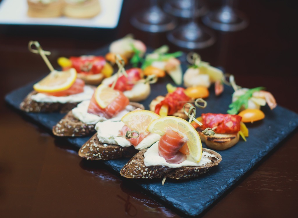 "Wenn Sie essen, bestellen Sie zwei Vorspeisen anstelle eines Aperitifs und eines Entrée", sagt Shapiro. "Dies ist eine sofortige Portionskontrolle, und normalerweise sind Vorspeisen insgesamt leichter."