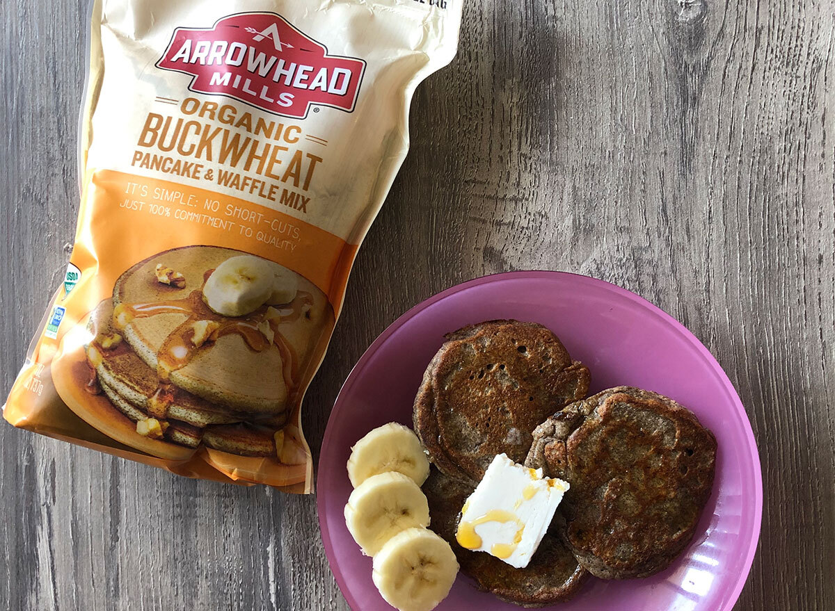 Gemacht mitBuchweizen, diese Mischung vonPfeilspitze Mills. hat eine unverwechselbare Farbe, die nicht mit Ihrem üblichen Pfannkuchen in Einklang steht, sondern eine gute Möglichkeit ist, die Dinge zu wechseln! Leider ist die Textur ein bisschen auf der kräftigen Seite, obwohl die Kuchen im Vergleich zu anderen Optionen relativ dicht sind, obwohl der Gesamtgeschmack eine schöne Variante ist, um es zu versuchen.