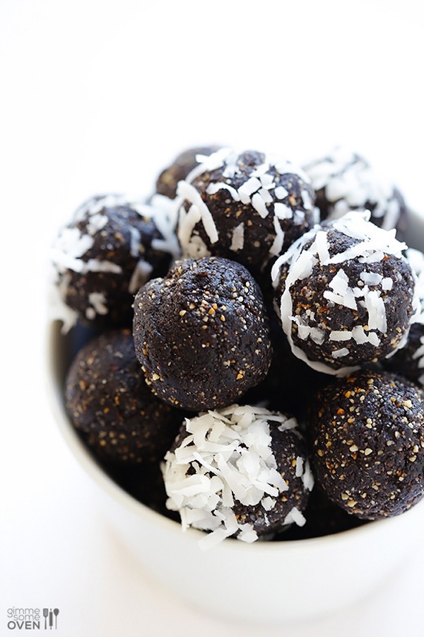 Seien Sie nicht von der süßen Gespräche von Nutella versucht; Machen Sie diese Energiebälle mit KakaoMandelbutter für zusätzliches Protein und weit weniger Zucker. Wenn möglich, suchen Sie nach einer Verbreitung mit nicht-alkalisierten Kakaopulver. Dieser Prozess kann das Pulver weniger bitter machen, aber es streift auch viele der gesundheitlichen Vorteile von Rohkakao aus. In jedem Fall, genießen Sie diese Leckereien, die die gesunden Fette und Faser von Kokosnussöl und der Flachs-Mahlzeit kennen, und fokussiert Sie bis zum Abendessen - auf die leckerste Weise.