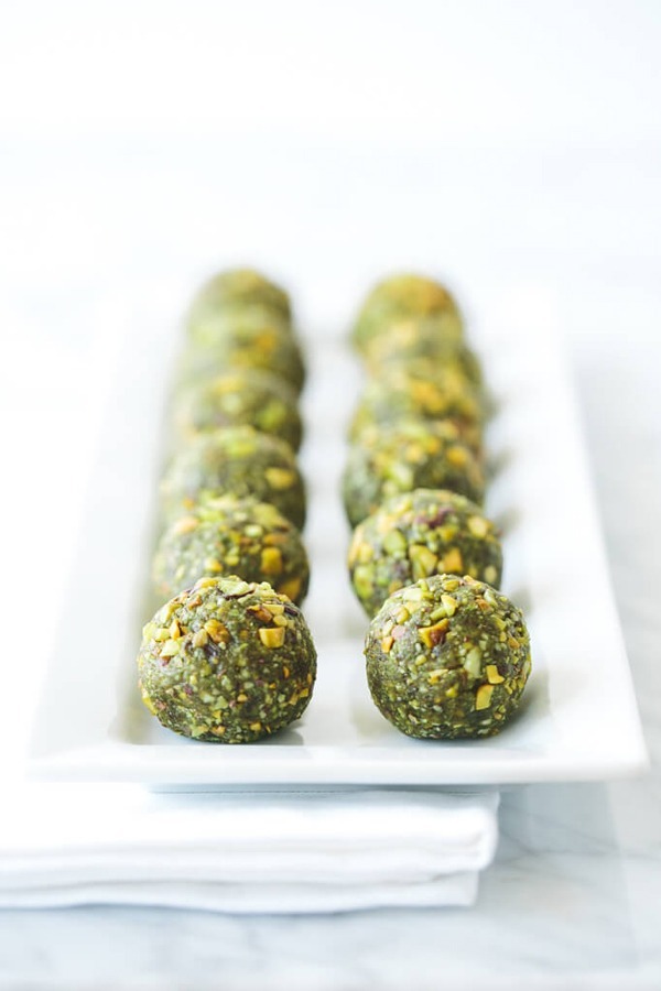 Diese köstlichen Leckereien sind eine großartige Möglichkeit, in einem der zu arbeitenBeste Tees für den Gewichtsverlust in deine Diät. Die erdigen Töne des Matcha-Pulvers und des nussigen Geschmacks der Pistazien ergänzen sich wunderbar.