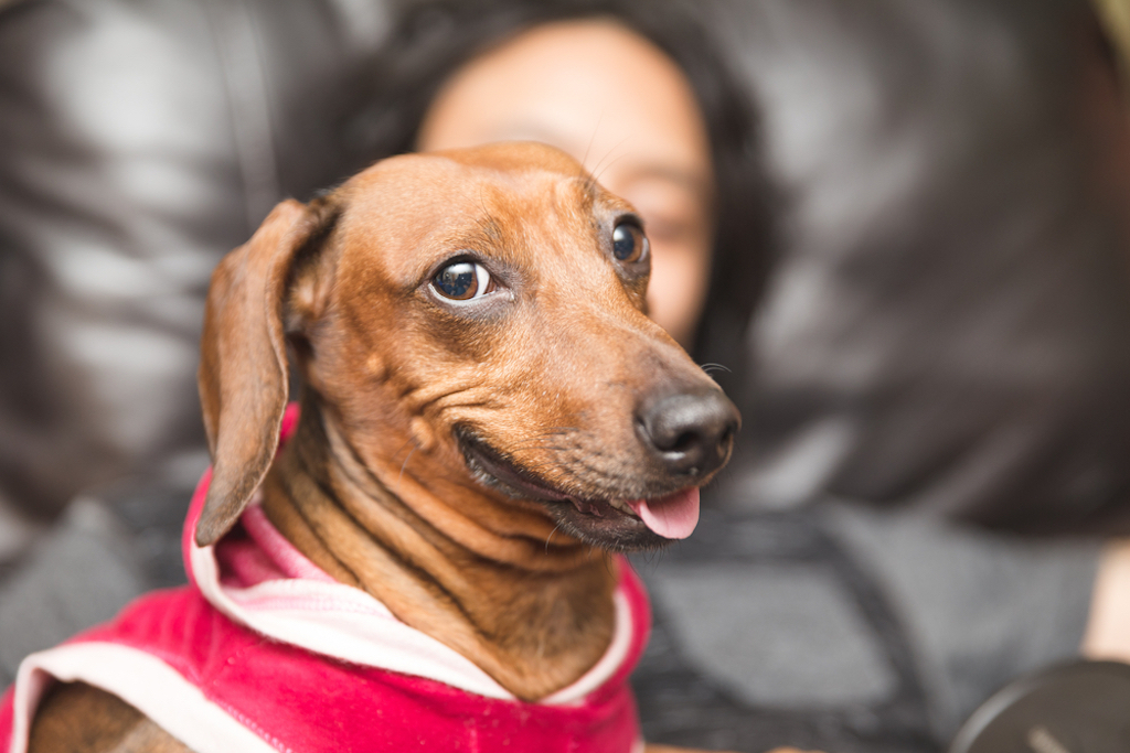 Teen stellt ein perfektes Foto von 16 entzückenden Dackehund
