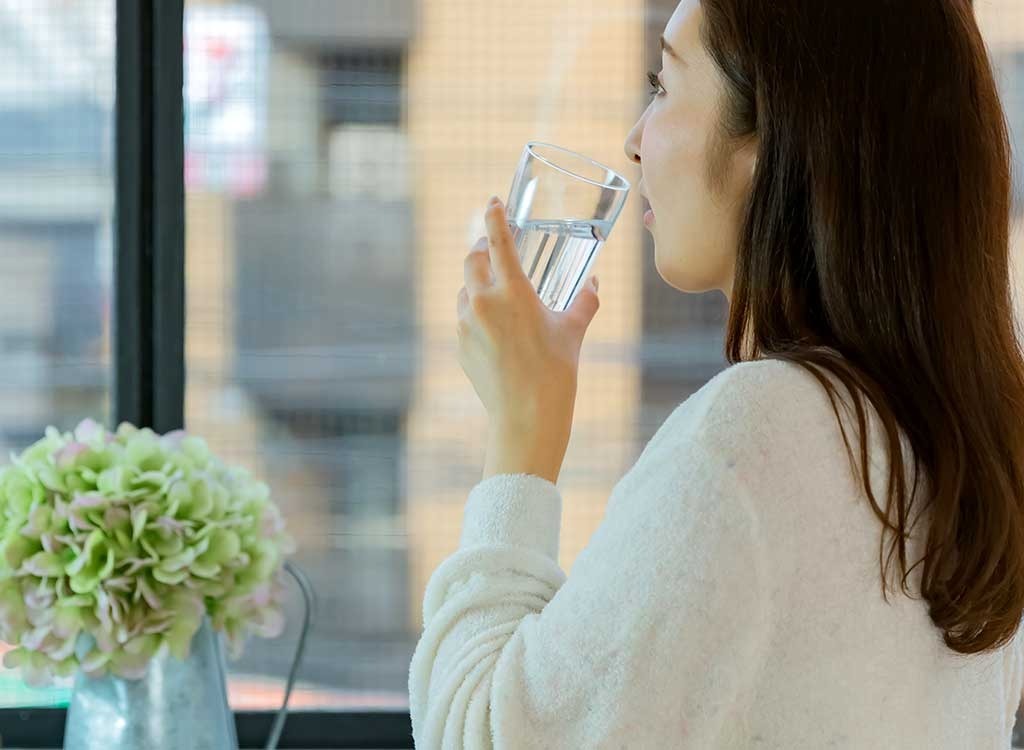 Amy Shapiro., MS, RD, CDN und Gründer von Real Nutrition NYC, sagt sie empfiehlt, dass ihre Patienten mindestens acht Gläser Wasser pro Tag zu vermeiden Trockenheit Symptome (gemeinsam mit der Menopause), sowie Blähungen (was kommen kann, erhalten stellen Sie sicher, mit hormonelle Veränderungen). Wenn reines Wasser keine hohe Anziehungskraft hält, überspringen Sie den im Laden gekauften aromatisierte Wässer, die in Zucker und künstlichen Zusatzstoffe fast immer hoch sind; stattdessen ziehen lassen Sie Ihre eigene mit Früchten und Kräutern. Es ist schnell und einfach und ein großer Einsatz von überreifen Produkten. Alternativ können Sie einen Punkt Lebensmittel zu essen, wie Wassermelone und Gurke, die einen hohen Wassergehalt aufweist.