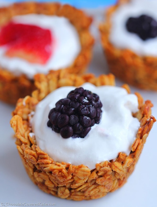 Hier ist ein lustiger, innovativer Weg, um Ihren Morgenjoghurt und Müsli zu haben! Dieses Muffin-Zinnrezept ist super leicht zu machen und führt zu einem köstlichen Kribus. Wir empfehlen, mit Beeren, einem Streuen von Zimt, und einige Chiasamen für einige hinzugefügte Omega-3s. Stellen Sie sicher, dass Sie sich von derschlechteste Joghurt zum Gewichtsverlust Beim Montieren Ihres Meisterwerks!