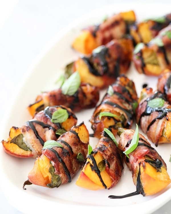 Speck gewickelt gegrillter Pfirsiche mit Balsamico Glazes