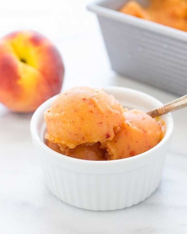 Obwohl Sorbet nicht fettartiger Sherbet und Eiscreme enthält, sind die Zuckerzähler oft ziemlich alarmierend. Dieses Rezept enthält 22,9 g Zucker; Im Gegensatz zum typischen Geschäft gekauften Sorten stammt der Zucker von Pfirsichen und rohem Honig anstelle von Fruchtsaft und künstlichen Sirupen. Für mehr Milchfreie Leckereien prüfen Sie diese20 Milchfreie gefrorene Desserts.