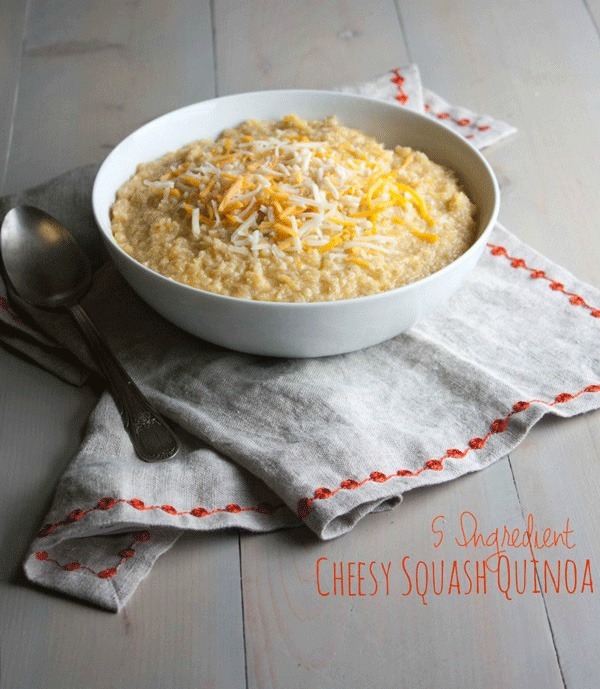 Wenn Quinoa fertig ist (20 Minuten) Flusen mit einem Löffel, dann fügen Sie den Kürbis und den Käse hinzu, rühren Sie, um zu kombinieren und in eine Schüssel zu bringen und zu servieren!