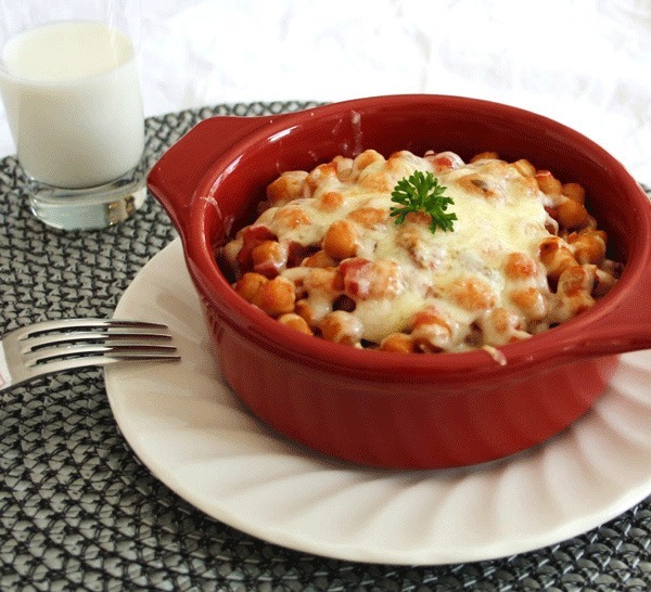 Ernährung pro Portion: 373 Kalorien, 15,6 g Fett (8,7 g gesättigt), 530 mg Natrium, 39,1 g Kohlenhydrate, 5,4 g Faser, 6,6 g Zucker, 22 g Protein (berechnet mit Magermilch und der folgenden Käsekombination: 3 Unzen reduziert Fat Cheddar, 3 Unze mit reduziertem Fett und reduziertem Natriumerika und 2 Unze von Ziegenkäse).