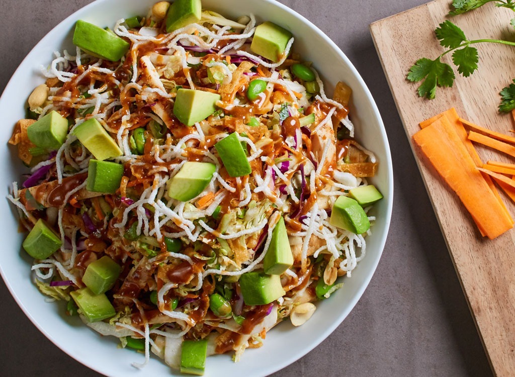 Kalifornische Pizza-Küchen-Salate dominieren diese Liste, und hier ist der Grund: Was sollte ein einfacher thailändischer Salat sein, der immer noch mehr als zwei Tage Zucker und fast 1.400 Kalorien enthält.
