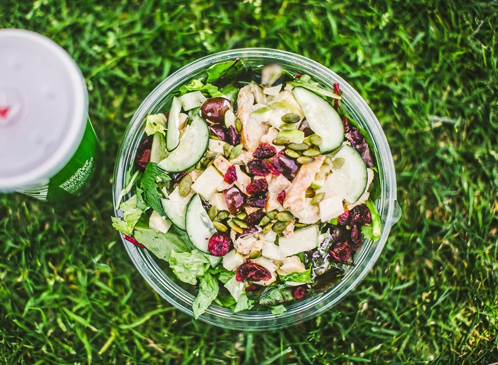 Dieser Salat hat immer noch fast zwei Tage süße Sachen - nicht so viel Pfannkuchen, aber in der Nähe. Und wenn Sie sich für knuspriges Hähnchen anstelle von gegrilltem Hähnchen entscheiden, erhalten Sie mehr Kalorien, insgesamt Fett, Natrium und Kohlenhydrate. Denken Sie, das ist schlecht? Klicken Sie hier, um herauszufinden, ob Sie das essen50 ungesunde Nahrungsmittel auf dem PlanetenSchnitte
