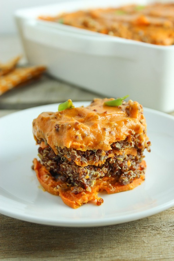 Ein völlig veganer Auflauf mit süßem Kartoffel und Quinoa (das einzige Getreide, das eine vollständige Proteinquelle ist), die die perfekte Texturkombination hat. Eine superdiät-freundliche Beilage oder sogar Mahlzeit, die Sie nicht verlässt, dass Sie diese schuldigsten Blues fühlen.Süße Kartoffelrezepte. sind einige unserer Faves geworden, weil sie eine Reihe von Nährstoffen, die sie zum Tisch bringen (und wie unglaublich lecker sie sind).