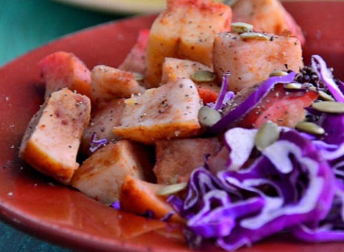 Dieses Rezept packt eine Volley von Schlankheitstempel.Gewichtsverlustfreundliches Quinoa ist die Basis für ein gesundes Medium von Äpfeln, lila Kohl und Kürbiskerne, die Magnesium, Eisen- und nützliche Fette enthalten.