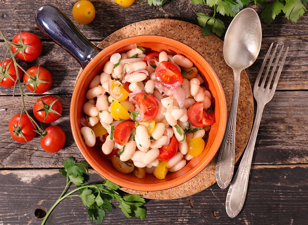 Dieser erfrischende mittelöstliche Salat ist jenseits lecker und dauert weniger als 20 Minuten. Beginnen Sie Ihr kulinarisches Abenteuer, indem Sie das Huhn auf eine heiße Pfanne werfen und es mit Ihren Lieblingsgewürzen würzen. Während es kocht, abtropfen und eine Dose Kichererbsen spülen und mit dem Gemüse kombinieren. Sobald das Huhn gekocht und gekühlt ist, fügen Sie es der Bohnen- und Gemüsemischung hinzu und streuen Sie alles mit Pfeffer, Petersilie, Essig und Öl und servieren Sie über ein Bett Ihrer Lieblingsgrünen.