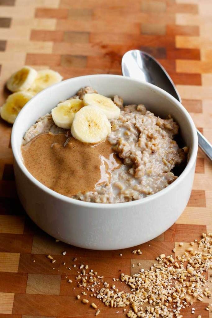 Überspringen Sie den Starbucks Frapp. Diese Caramel-Mokka-Combo enthält langsame Kohlenhydrate, Flachbauchfaser und Satiating-Protein. Um die Zuckerzählung zu senken, entscheiden Sie sich für ½ Tasse brauner Zucker. Diese Schüssel hat eine Menge Geschmack, sodass Sie nicht einmal die zusätzliche Süße verpassen.