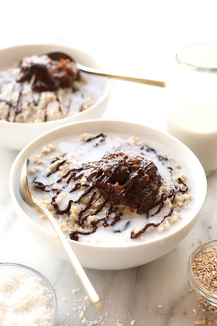 Mmmm ... Lebkuchen. Melasse, Muskatnuss, Bodenzelgen, Vanille und Zimt - alle warmen und gemütlichen Aromen Ihrer Lieblingskekse. Warum genießen Sie sie nicht in Ihrem Haferflocken? Ingwer beruhigt einen Mühen, den Muskatnuss entgiftet den Körper, der Zimt senkt Blutzucker und Melasse mit Entzündungskämpfe-Antioxidantien. Sprechen Sie über einen gesunden Weg, um Ihren Tag zu beginnen.