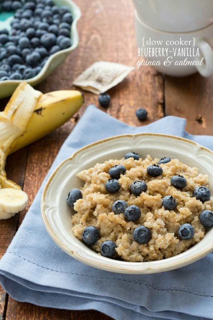 Langsamer Kocher-Blaubeer-Vanille Quinoa und Haferflocken