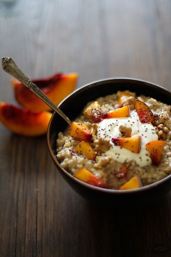 Pfirsiche n "Creme" Stahlschnitt Haferflocken mit Chiasamen