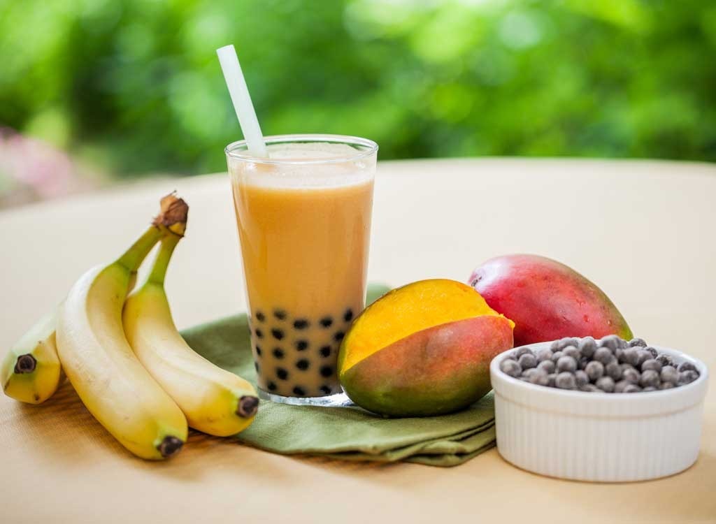 Nach einer Studie in derAmerikanisches Journal der klinischen Ernährung, weil Energie, die aus Flüssigkeiten gewonnen wurde, als weniger befriedigend ist, als Kalorien von festen Lebensmitteln zu erfüllen, neigen wir dazu, mehr zu trinken, bevor wir uns zufrieden fühlen, und Sie trinken ein ziemlich zuckerhaltiges Zeug. Versuchen Sie, Blase-Tees mit echten Früchten, anstatt künstliche Süßstoffe und ungesüßte Milch zu wählen. Zucker, die natürlich in Lebensmitteln wie Obst und Milch auftreten, sind nicht die Arten vonZucker hinzugefügt Sie müssen besorgt sein, weil sie mit Vitaminen, Mineralien und Faser gepaart sind.