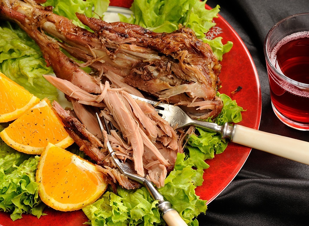 "DunkelTruthahn Fleisch enthält zu viel Fett, um als schlankes, gesundes Fleisch zu betrachten, sogar mehr, wenn die fetthaltige Haut übrig bleibt. Ich weiß, es ist ein köstlicher Teil Ihrer Thanksgiving-Mahlzeit, aber versuchen Sie, ein Stück für weißes Fleisch zu tauschen, und Ihr Bauch wird Ihnen später danken ", sagt Dr. Spar.
