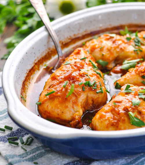 Diese honig französischen gebackenen Hähnchenbrust vonDie gewürzte Mutter Nehmen Sie sich nur fünf Minuten, um vorzubereiten, und sind bereit, etwa eine halbe Stunde später zu essen. Das Geheimnis hier ist die Sauce, die eine Kombination aus Olivenöl, Honig, Apfelwein, Chili-Sauce, Worcestershire-Sauce, trockenen Suppenmix und Salz verwendet, um den perfekten süßen und erwürdigen Aroma zu erreichen. Mit Brokkoli oder String-Bohnen für einige zusätzliche Nährstoffe servieren.