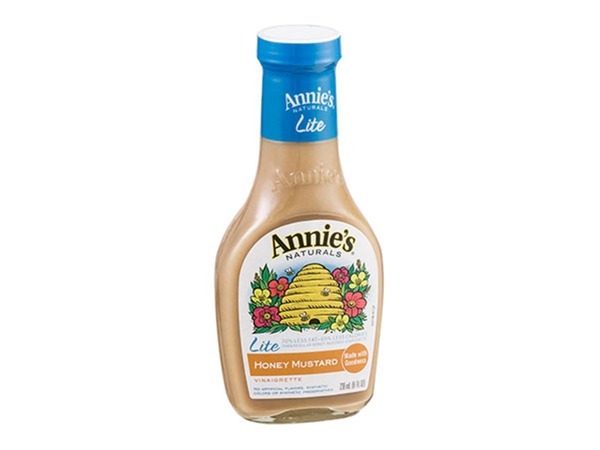 Salate kuscheln voller frischem Gemüse und mageres Protein eignen sich hervorragend für den Gewichtsverlust ... bis Sie sie in Mast, hochkalorien- und zuckerhaltigen Dressings ertrinken. Dann ruiniert es total die Mahlzeit und stillt den Fortschritt des Gewichtsverlusts. Lesen Sie unbedingt Ihre Etiketten und achten Sie auf zusätzliche Zucker und zu viele Kalorien. Wir mögen Annies Naturals Lite Honig Senf Vinaigrette; Bei nur 40 Kalorien ein Servieren fügt Ihr Salat einen spantigen Geschmack hinzu, ohne die Nährstoffleistungen zu negieren.