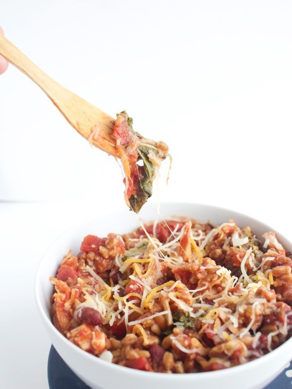 Beschuldige uns nicht, wenn Meistere für dieses Chili zu einem regulären Weeknight-Gesang in Ihrem Haushalt werden. Hühnchen, Farro und Bohnen verleihen einen erheblichen Betrag an Hunger-Crushing-Protein, während Antioxidans-Pack-Kohl und Knoblauch ernsthafte Ernährung auslösten. Eine Hinweis: Bevor Sie dienen, stellen Sie sicher, dass Hühnchen super zart ist.