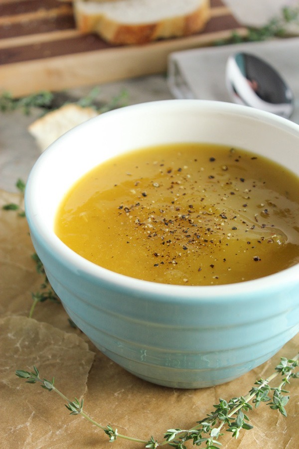 - Setzen Sie die Temperatur auf niedrig und kochen Sie 4-6 Stunden lang und rühren Sie gelegentlich. Die Suppe erfolgt, wenn der Squash sehr zart ist