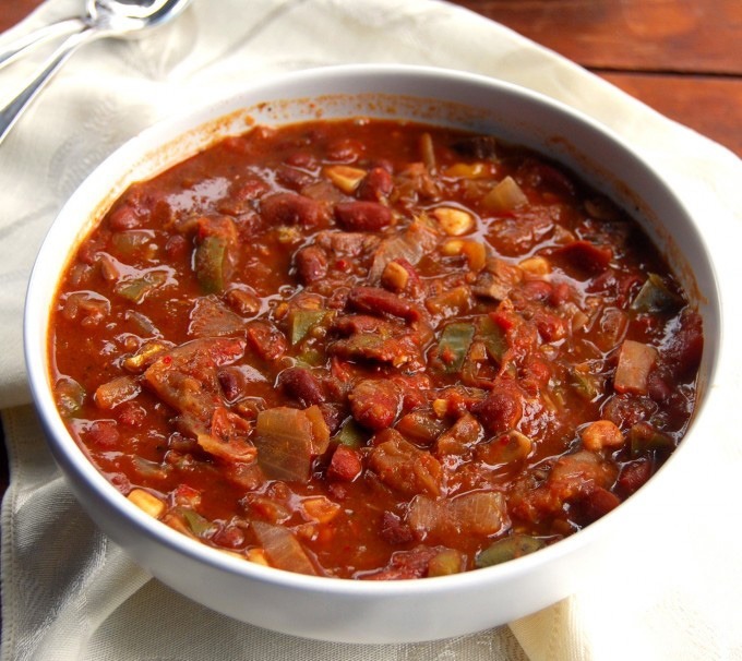 Tauchen in eine wärmende Schüssel Sonntagnachtfußball Back-TopfChili? Das bedeutet nicht, dass Sie sich am Montag am Montag um den automatischen Kriechen kriechen müssten. Ein typisches Chili ist hoch in Kalorien, Fett und Natrium (diese zusätzliche Handvoll geriebener Käse hilft nicht). Versuchen Sie stattdessen eine herzhafte Schüssel dieses veganen Chili, die mit Abnehmen von Gemüse wie Zucchini, Glockenpfeffer und Mais gepunktet ist. Verstärkung der Hitze mit extra Cayenne, was dazu hilft, Fett zu verbrennen.