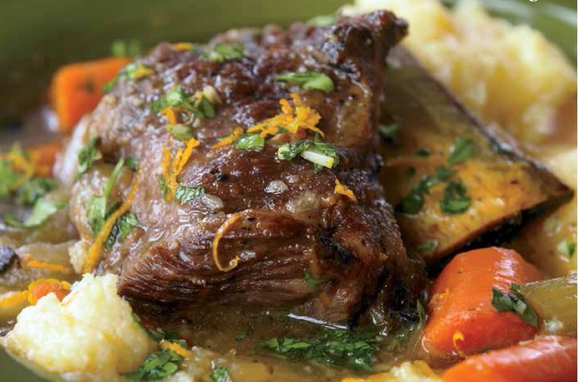 - Wenn Sie Gremolata verwenden, mischen Sie die Petersilie, Knoblauch und Orangenschale. Servieren Sie das Rindfleisch (zusammen mit etwas reduzierter Sauce) über weiche Polenta oder Kartoffelpüree. Streuen Sie mit dem Gremolata (falls verwendet).