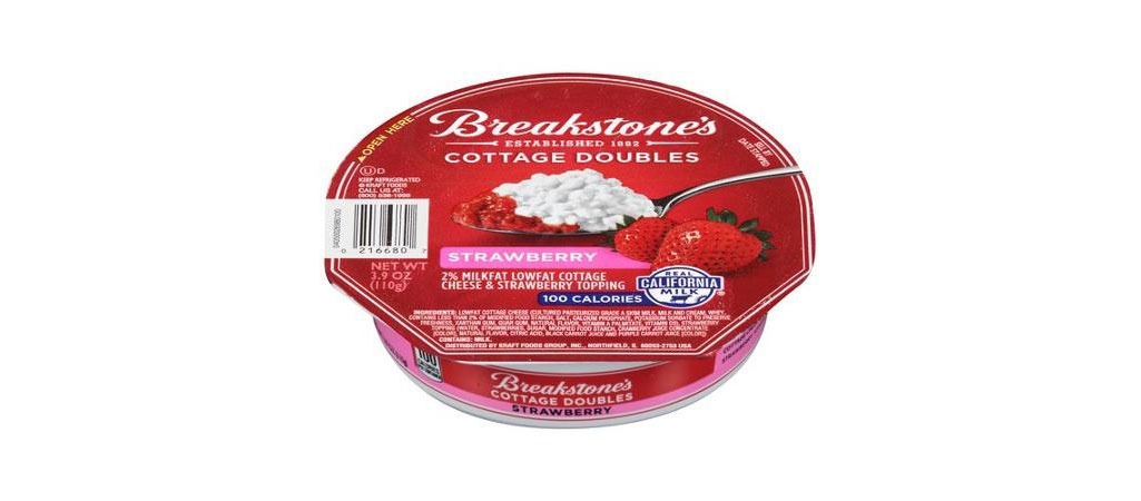 Wenn Sie ein Produkt mit zusätzlichen Früchten kaufen, verdoppelt sich das Hütten des Breakstone 100 Calorien Cottage-Käse mit Erdbeere, kaufen Sie grundsätzlich eine Wanne von Zucker. Eine Portion enthält 10 Gramm Zucker gegen nur 9 GrammProtein.