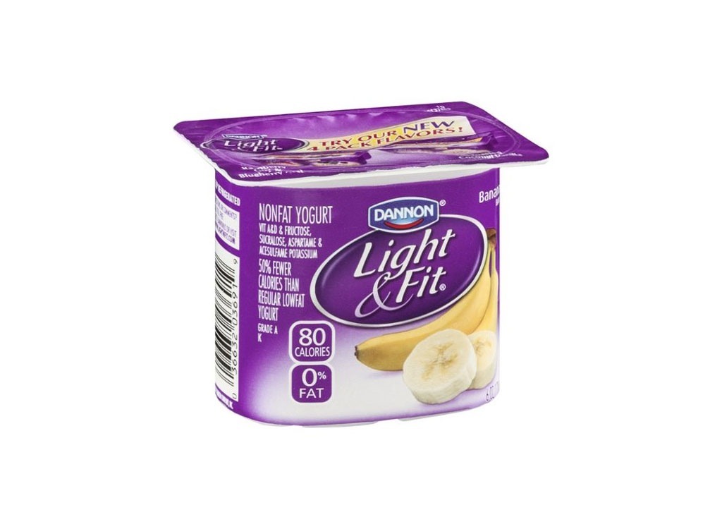 Die Reduzierung von Fett bedeutet fast immer immer mehr Zucker. Seitdem wird Dannons leichte und fit nichtfat Bananenjoghurt entfernt HFCs aus ihrem Produkt, der HFCs von ihrem Produkt entfernt ist, ist der Rohrzucker als dritter Zutat nach Nonfat-Milch, Wasser und Stärke und vor der tatsächlichen Banane aufgelistet.