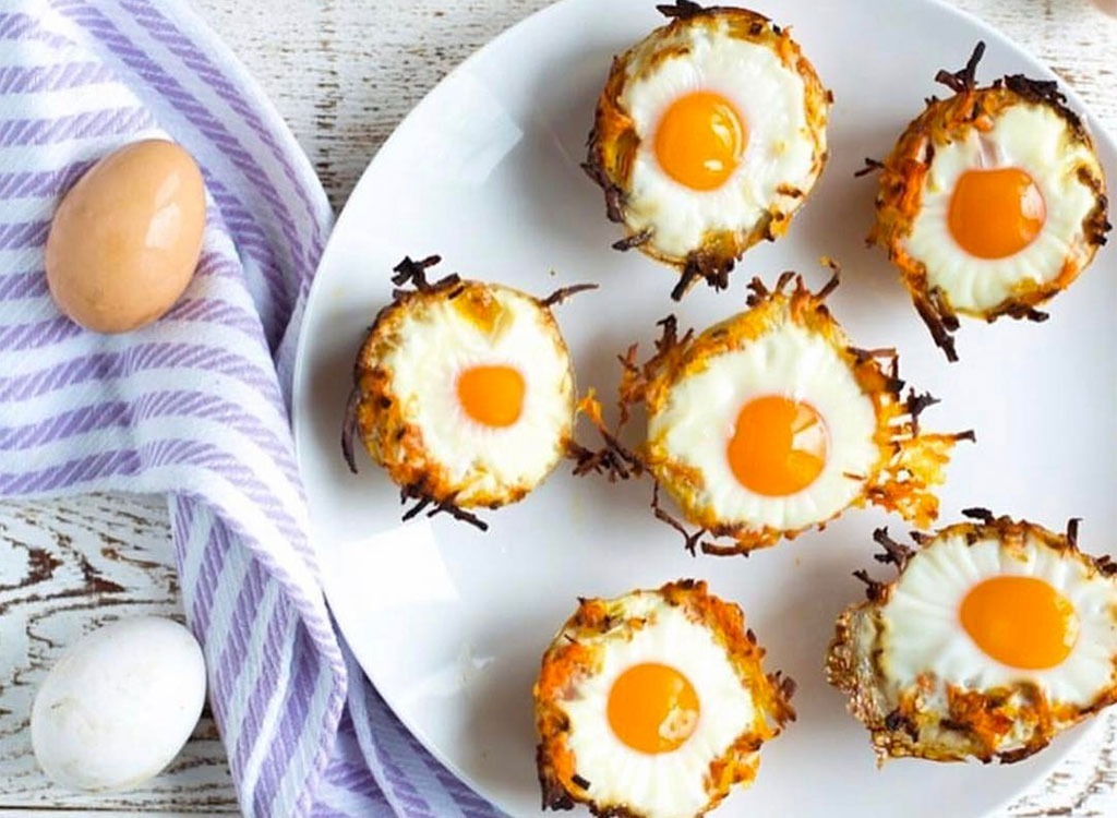 Schnappen Sie sich eine Tasche mit zerrissenen gefrorenen Süßkartoffeln und machen Sie sich bereit für ein Frühstück, das Sie durch die Woche dauern wird. Wir fügen uns gerne grüne Pfeffer zu unseren Eiern hinzu. Diese Frucht ist nicht nur für Ihr Immunsystem großartig, sondern auch die allgemeine Gesundheit Ihrer Haut, Zähne und Zahnfleisch dank seiner hohen Höchstgrade an Carotinoide. Sie möchten Ihren Teint noch mehr verbessern? Verpassen Sie nicht diese25 gesunde Lebensmittel, die Ihnen glühende Haut geben.