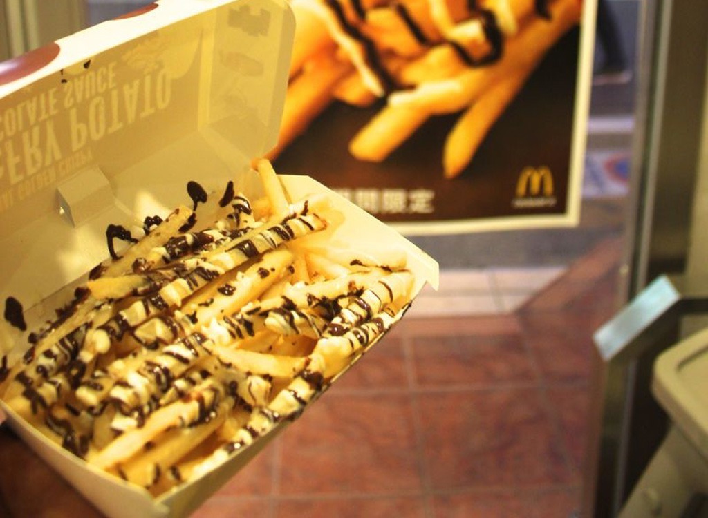 Lassen Sie es den Japanern, um eine der interessantesten Kombinationen von süßem und salzigem zu veröffentlichen, auf die wir gekommen sind. Diese "Schokoladenfries" sind genau das, was sie klingen, als würden sie sein: ein Bett aus knuspriger Pommes mit weißer Schokolade und Milchschokolade mit "Cacao Aroma". Leider oder zum Glück, abhängig von Ihrer Sichtlage - dieser neue Menüzugabe ist nur in Japan verfügbar. Um einen ähnlichen Geschmack bei Ihrem örtlichen Micky D's an Ihrem Cheat-Tag zu erreichen, bestellen Sie eine kleine Reihenfolge vonPommesund fragen Sie nach einer Seite von Schokoladenfudge. Sie haben das Zeug, um ihre Sonnenada zu testen.