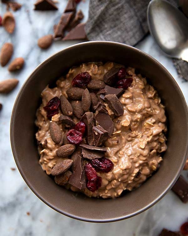 Schokolade bedeckte Mandel über Nacht Hafer