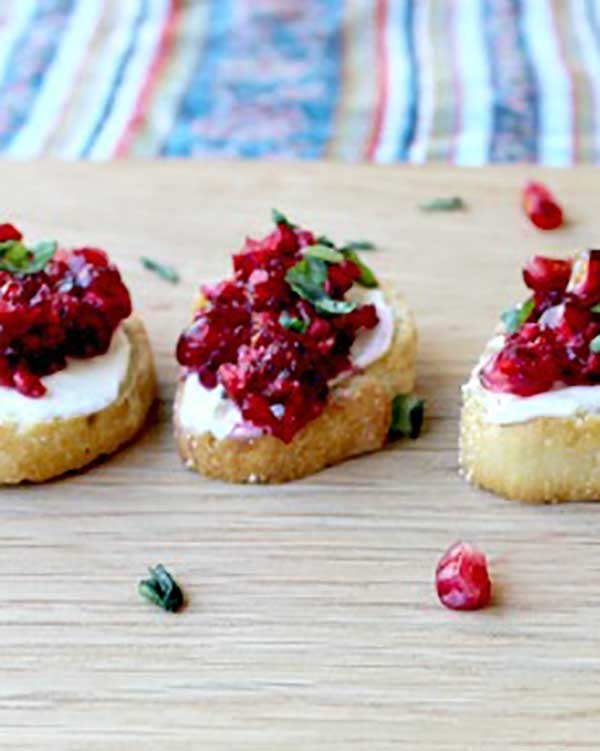 Granatapfel-Cranberry-Bruschetta.